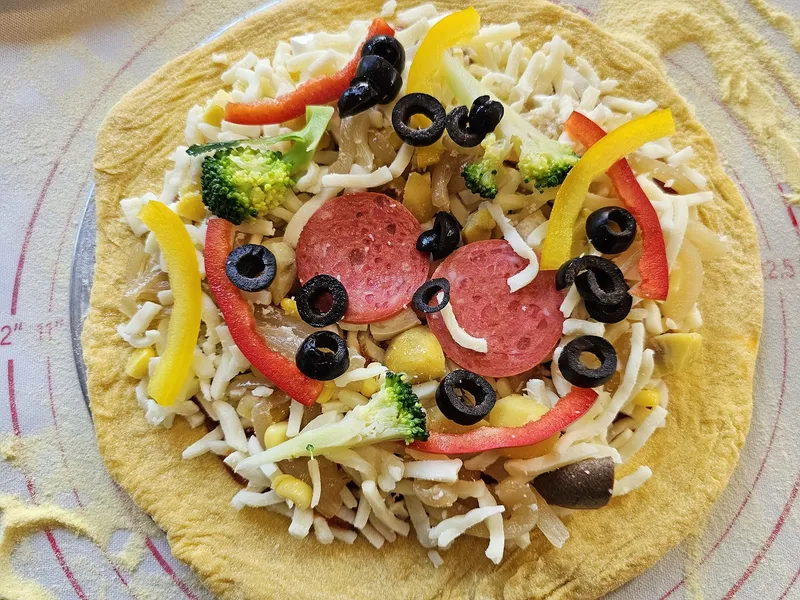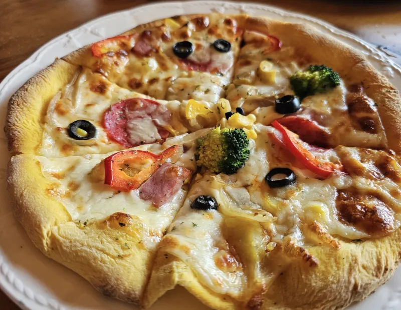 맛있는 점심으로 피자를 구워 먹기로 했습니다..