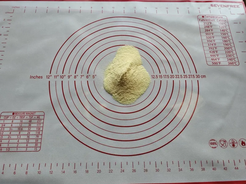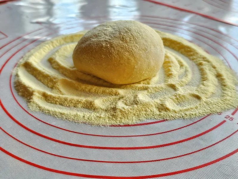 바닥에 있는 노란 가루는 옥수수 가루에요.