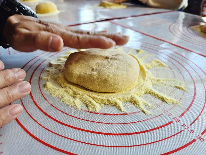 크기를 측정하면서 반죽을 늘려보았습니다.