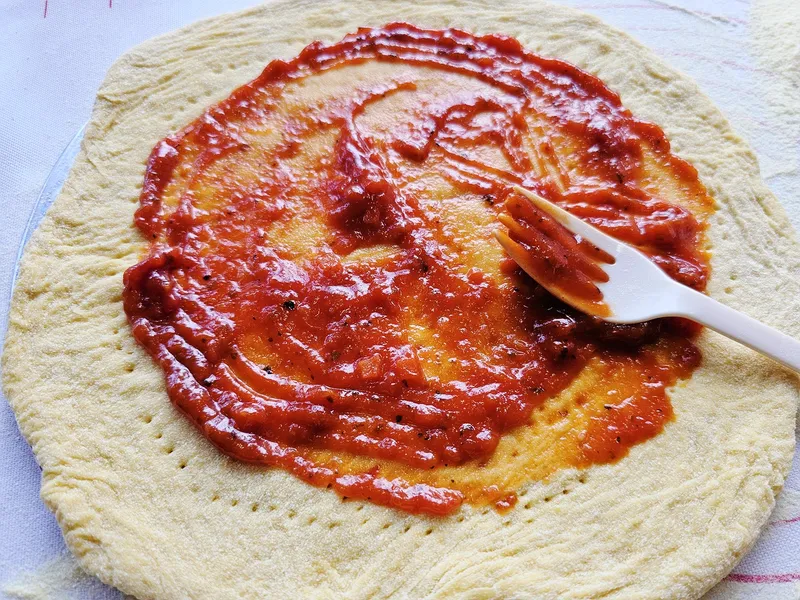 경계 안쪽으로 피자소스를 올려보았습니다.