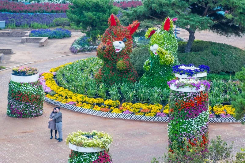 태안에서도 해안경관이 수려하기로 손꼽히는 꽃지해수욕장 바로 옆에 위치한 코리아플라워파크는 아름다운 할미 할아비 바위 풍경이 한눈에 보이는 화훼공원으로 매년 봄부터 여름, 가을까지 계절마다 아름다운 꽃축제가 열려 사람들의 발길이 꾸준히 이어진답니다.