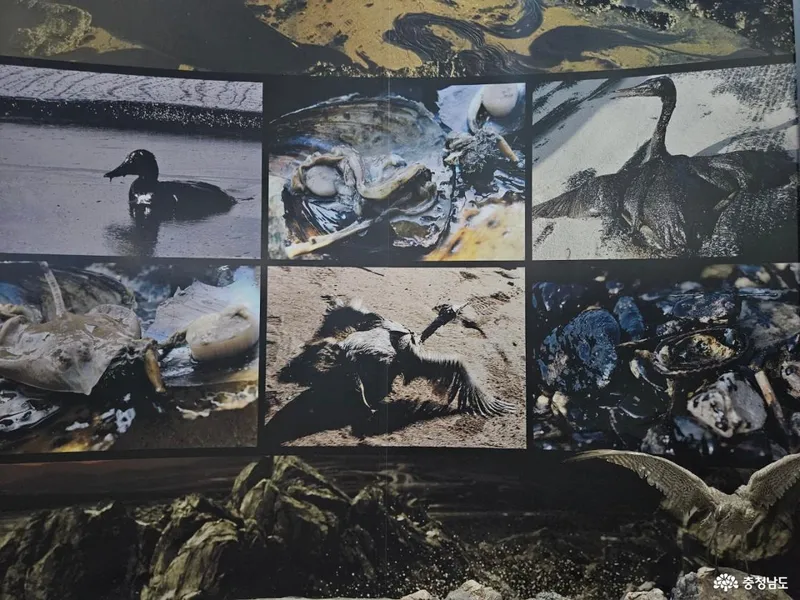 기름을 뒤집어 쓴 새들의 모습, 해변이 모두 까맣게 변해버린 현실, 생계가 막막해진 어민들 등 모두 좌절의 시간에서 이렇게 맑고 깨끗한 바다를 다시 볼 수 있는 것에 감사했다. 1층 전시존은 그 당시 방제작업을 하는데 사용했던 도구, 방제복 등이 전시되어 있고, 그래픽 영상 자료가 흘러나오고 있었다.