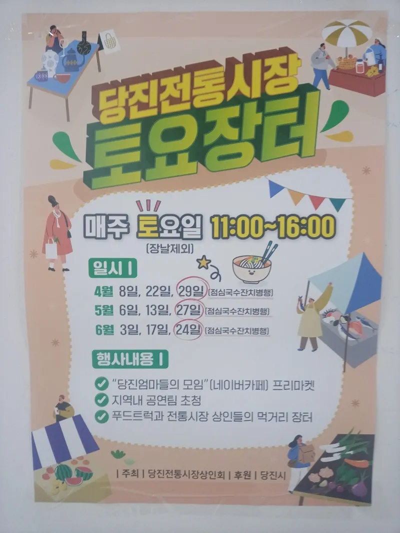 사람 냄새나는 푸근하고 정겹고 흥겨운 당진시장이랍니다. 앞으로 6월까지 진행될 예정인 당진전통시장 토요장터에 놀러 오세요! 버스킹 공연도 있으니 구경 오세요 :)