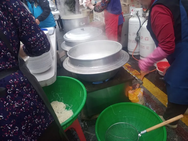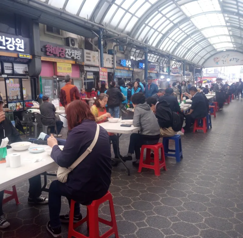 오늘은 토요장터가 열리는 날 중에서도 특별히 점심 국수잔치가 있는 날이었습니다. 시장 통로에 이렇게 테이블이 준비되어 있고 저렴한 금액으로 국수를 사 먹을 수 있었습니다.