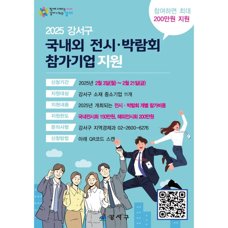 💡 신청안내 : 홈페이지▷강서소식(공지/새소식) “2025 국내외 전시박람회 참가기업 지원”