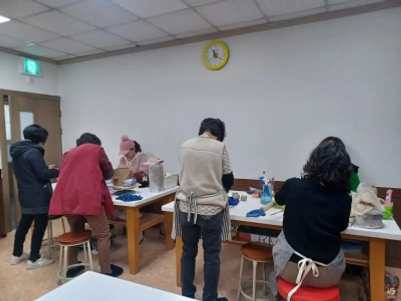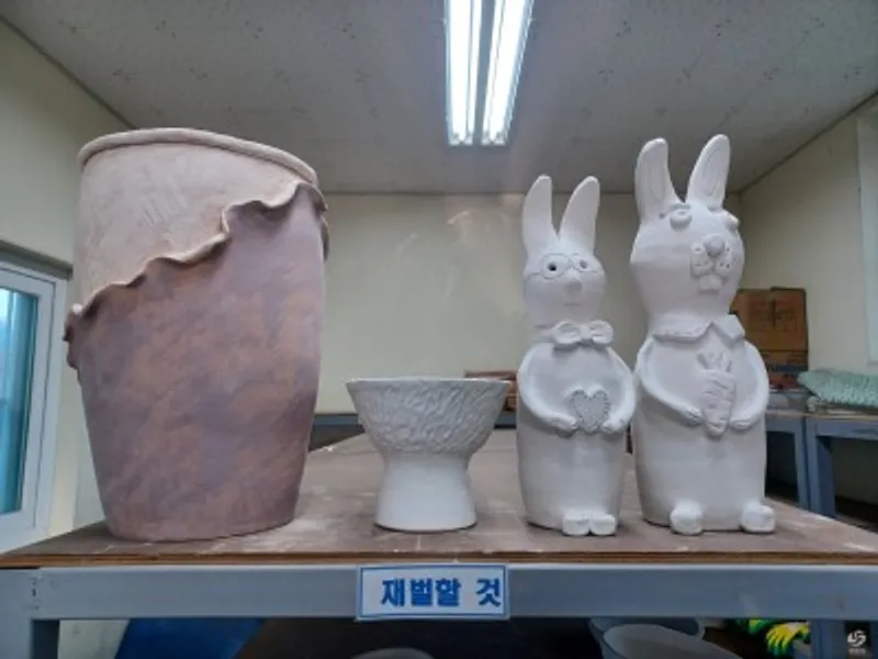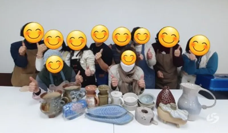 수강생들이 만든 생활도자기는 자체보유한 전기가마 (2기)에서 초벌구이(850℃) ,불순물 제거 및 유약작업 ,재벌구이(1,200℃)를 하면 도자기가 완성 된다.