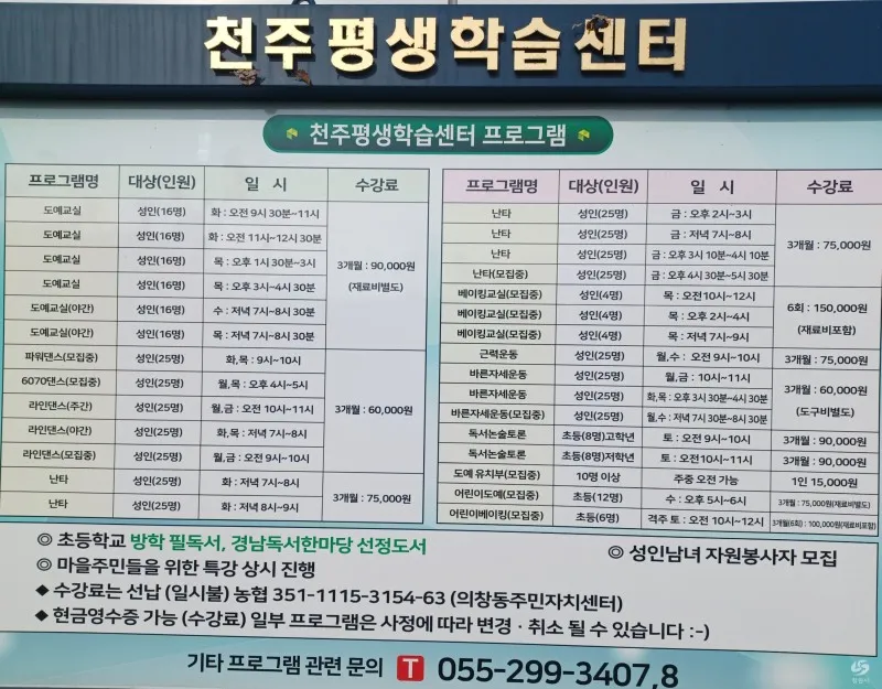 ▷문의 : 천주평생학습센터 (전화 055-299-3407)