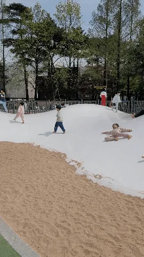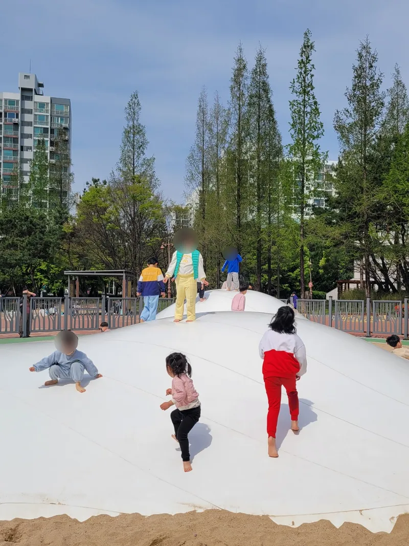 어린이들은 돔 정상을 오르고 뛰고 웃으며 신나는 시간을 보냅니다.
