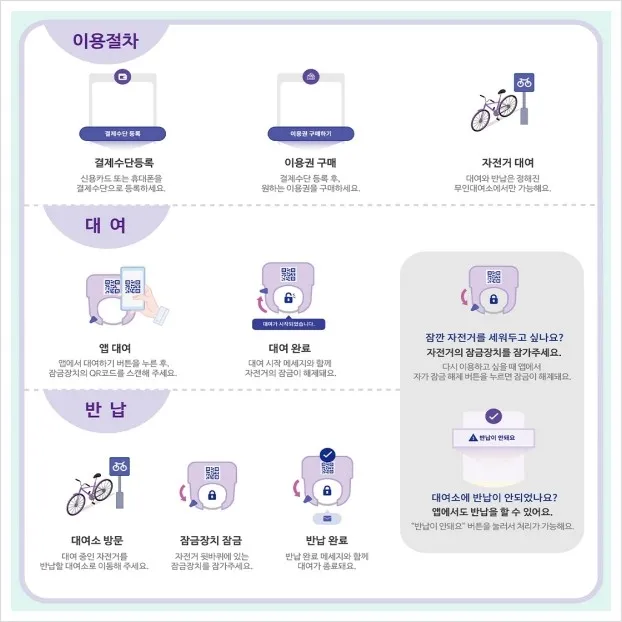 대여소 방문 → 잠금장치 잠금 → 반납 완료
