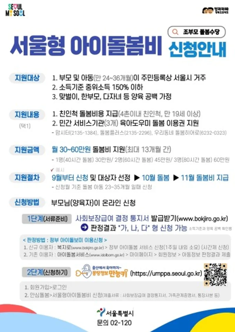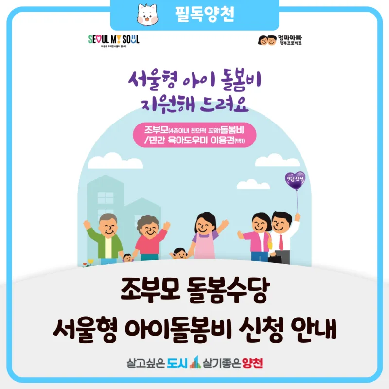 조부모 돌봄수당 서울형 아이돌봄비 신청 안내 "손주 돌보시는 조부모님 돌봄수당 받으세요!"