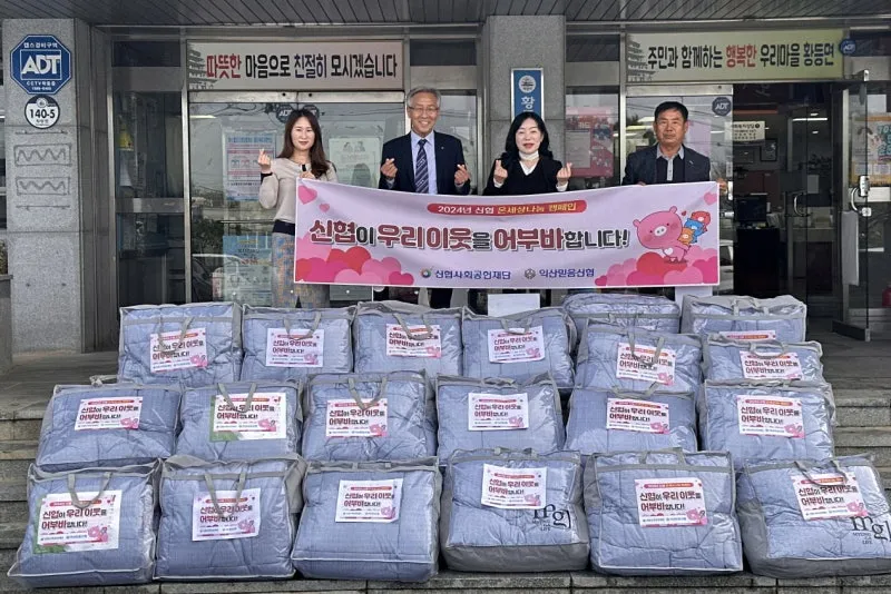 황등면 행정복지센터는 익산믿음신협(이사장 임병길)이 4일 겨울 이불 20채(100만 원 상당)를 전달하며 이웃사랑을 실천했다고 밝혔다.