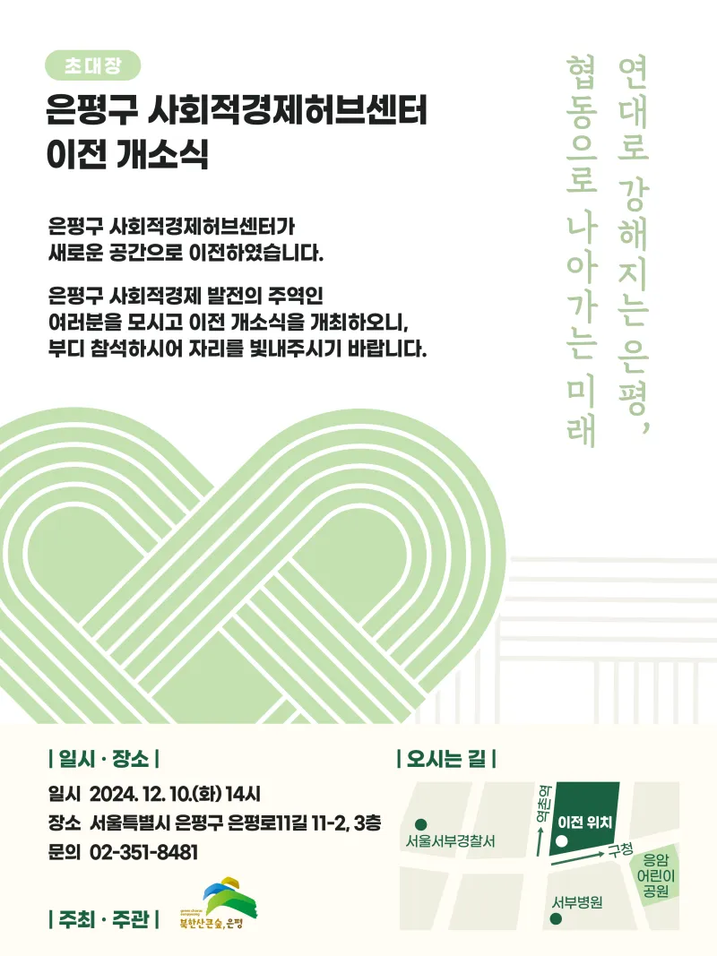 은평구 사회적경제허브센터 이전 개소식에 초대합니다.