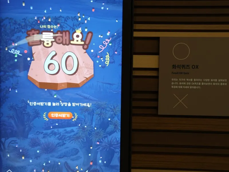 화석퀴즈도 풀고 상장도 받아가세요.