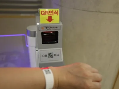 요렇게 팔찌를 받아 착용하고 입장 시 QR스캔을 하고 입장하면 되어서 편리하더라구요.
