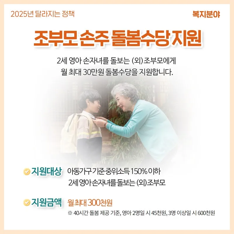2세 영아 손자녀를 돌보는 (외)조부모에게 돌봄수당을 지원하는 제도
