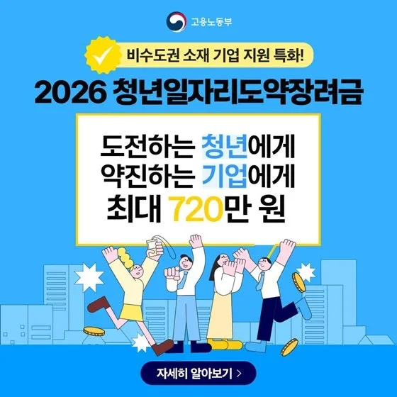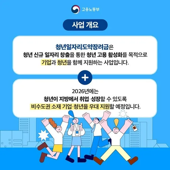 2026 청년일자리도약장려금 혜택, 비수도권 기업·청년 최대 우대 지원
