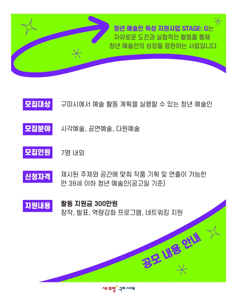 구미문화재단에서는 자유롭고 실험적인 도전을 원하는 청년 예술인들을 위한