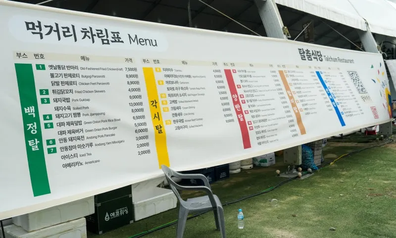 부스별 메뉴와 가격을 한눈에 확인할 수 있었습니다.