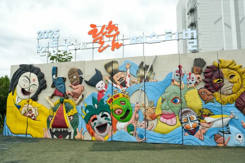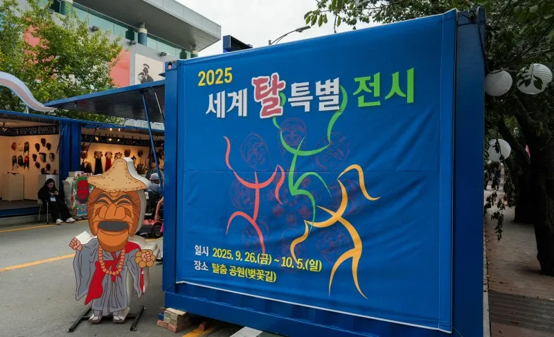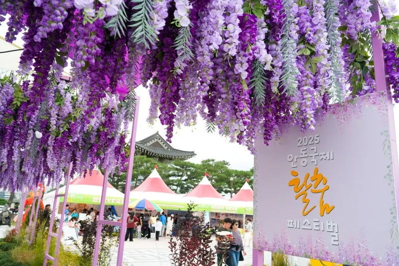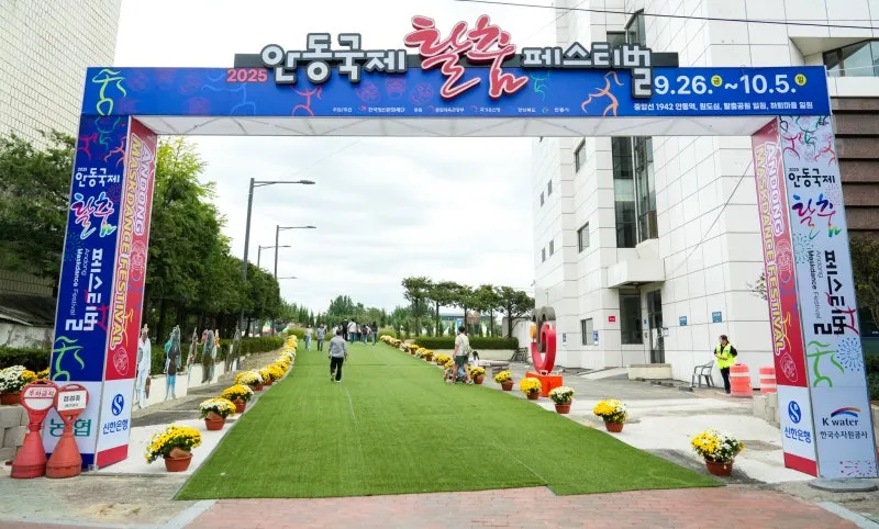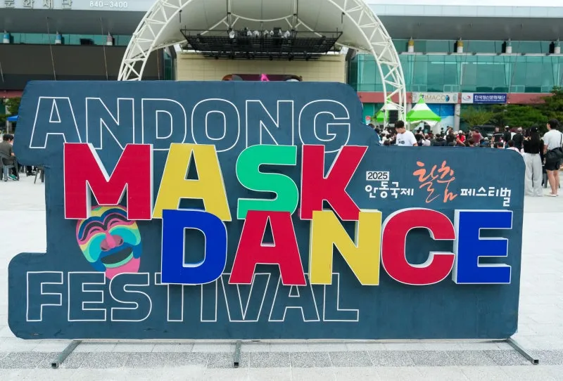 ‘ANDONG MASK DANCE FESTIVAL 2025’라는 대형 컬러 포토존이 설치되어 있었으며,
