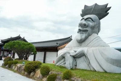 거대한 하회탈 조형물로 넉넉한 미소를 띤