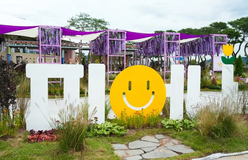 보랏빛 등나무 조형물과 함께 꾸며져 있어