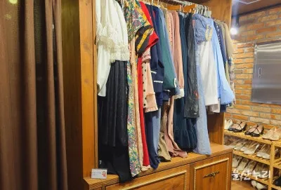 들어가는 입구에는 남자 옷들이 디피되어 있고 안쪽으로 들어가면 여자 의상들이 잘 정돈되어 있습니다.