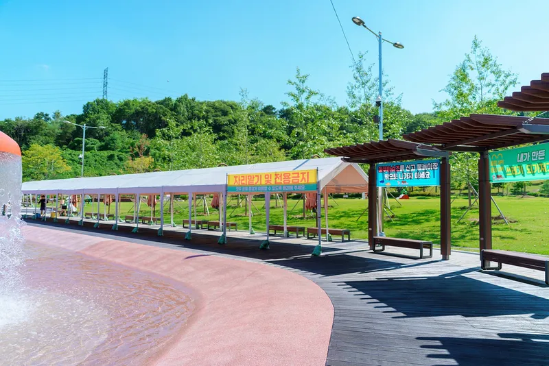 보호자들이 아이들을 지켜보며 편안하게 쉴 수 있도록 그늘막과 휴게 공간이 충분하게 마련되어 있으며,