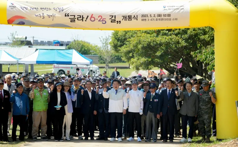 ‘글라! 6․25길’ 은 전쟁의 역사현장을 걸으면서 아픈 과거를 기억하고, 내일의 제주 번영을 위해 함께나가자는 의미에서 ‘가자’의 제주어인 ‘글라’를 붙여 명명했습니다. ‘글라! 6․25길’ 의 개통식이 2일 오전 10시 해병 3·4기 호국관에서 개최됐습니다.