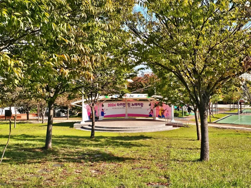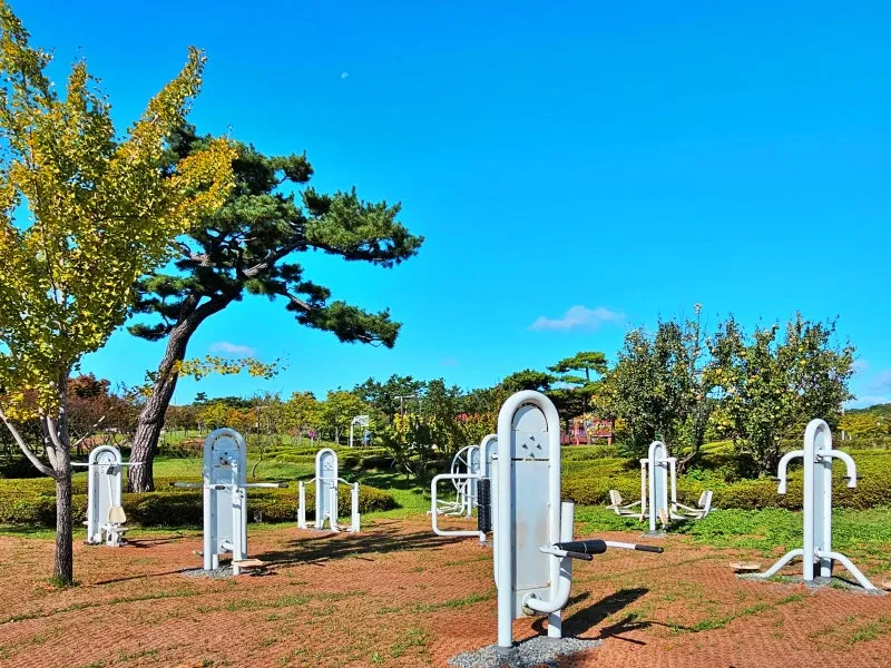 공원에는 족구장, 농구장, 배드민턴장, 테니스장 등의 체육시설과 간단한 운동을 할 수 있는 체력단련시설 그리고 파고라 등의 시설들이 있어 아이들과 피크닉을 하며 한나절 놀기도 참 좋습니다.