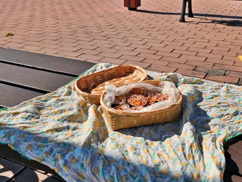 맨발걷기길을 걸어 공원을 한바퀴 돌고 쉬어가기 좋은 파고라 아래서 아침에 싼 김밥먹으며 잠시 쉬어봅니다.