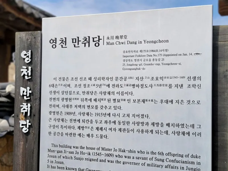 영천 고택 만취당은 조선 선조때