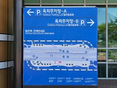 주차장은 철도 아래쪽 양쪽으로 주차장이 마련되어 있습니다