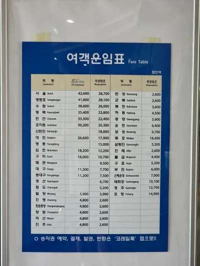 열차 시간표와 여객 운임표도 함께 부착되어 있으니 참고해 주시면 좋을 거 같습니다