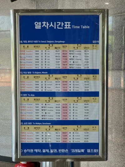 열차 시간표는 매표소 옆에 안내되어 있는데요
