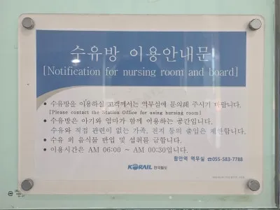 함안역 실내에는 수유 방도 함께 운영하고 있습니다
