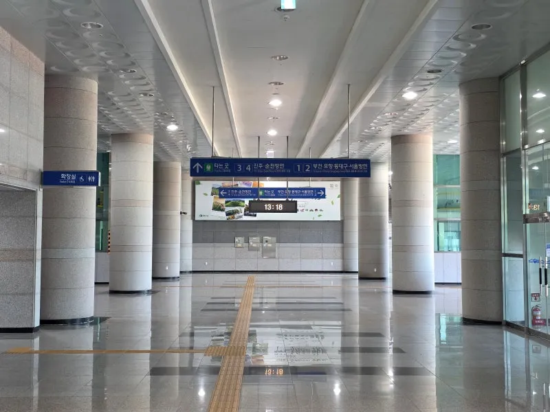 진주, 순천방면은 왼쪽, 부전, 포항, 동대구, 서울 방면은 오른쪽으로 이용하면 된다고 안내되어 있습니다