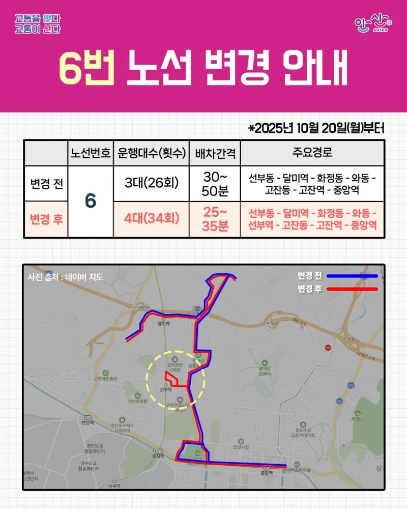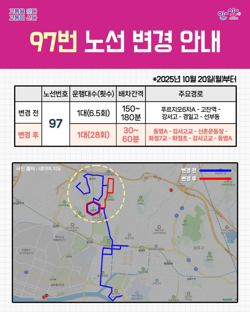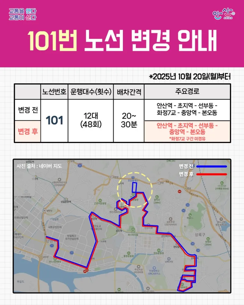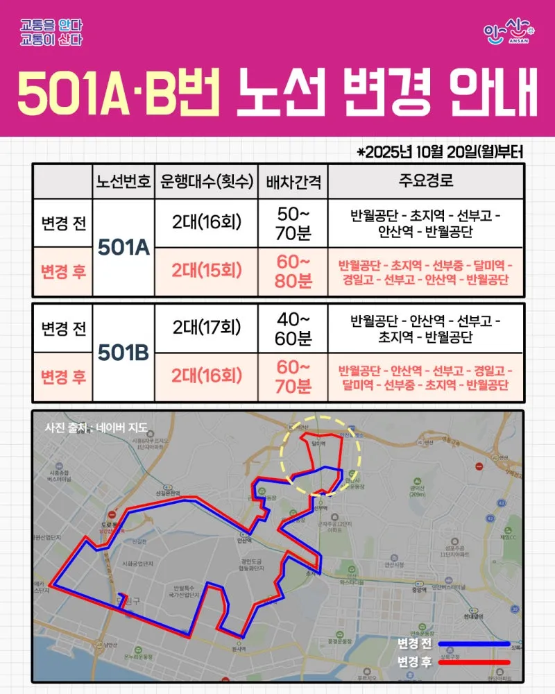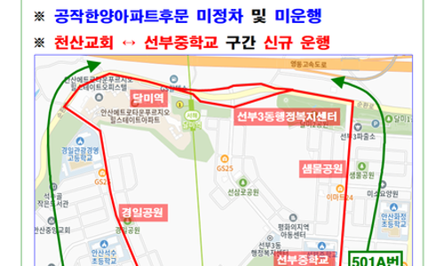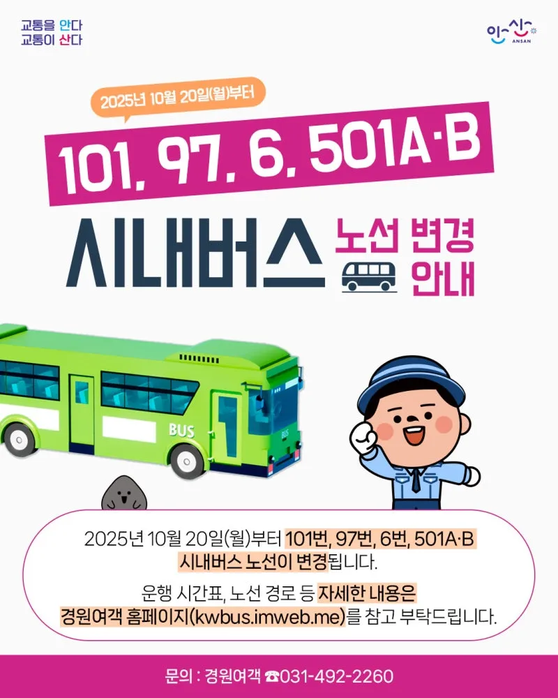 안산시 시내버스(101, 97, 6, 501A·B) 노선 변경 안내