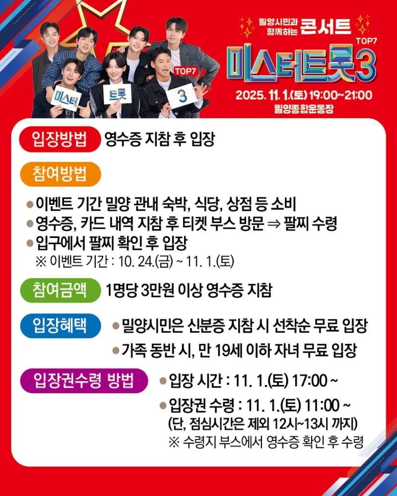 밀양시민과 함께하는 콘서트, 미스터트롯3 TOP7 콘서트 안내