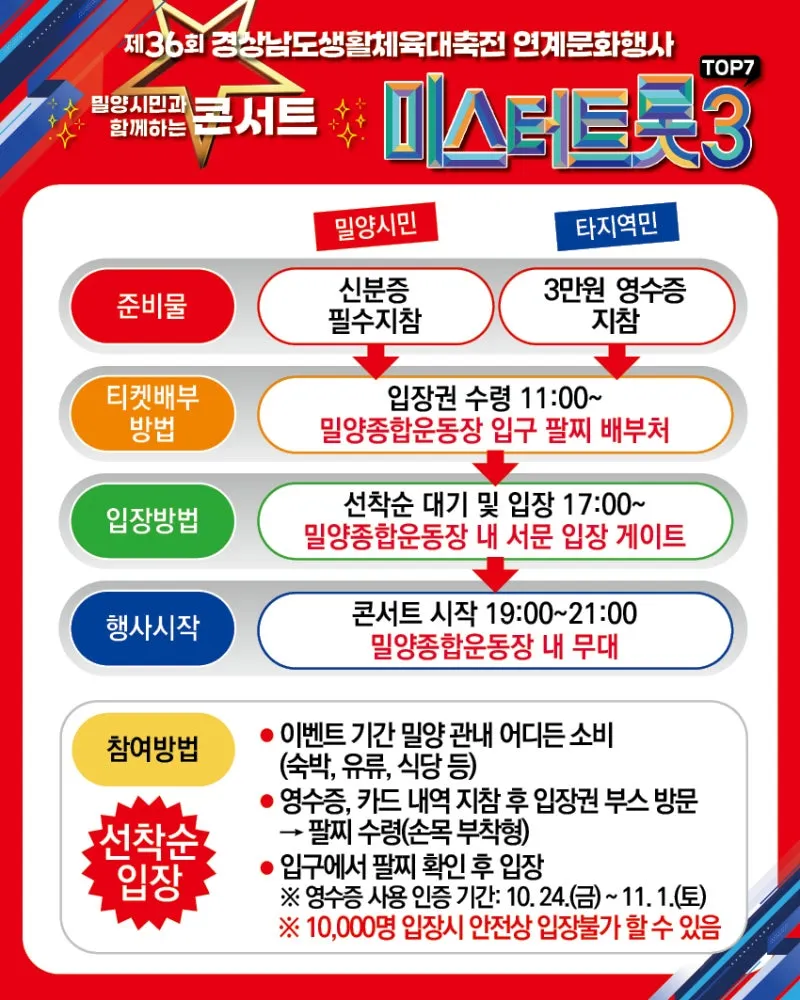 ✨ 가을밤, 미스터트롯3 콘서트와 함께 밀양에서 흥겨운 밤을 즐겨보세요!