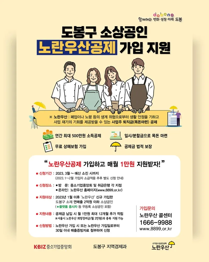 도봉구 소상공인 노란우산공제 가입 지원사업 안내