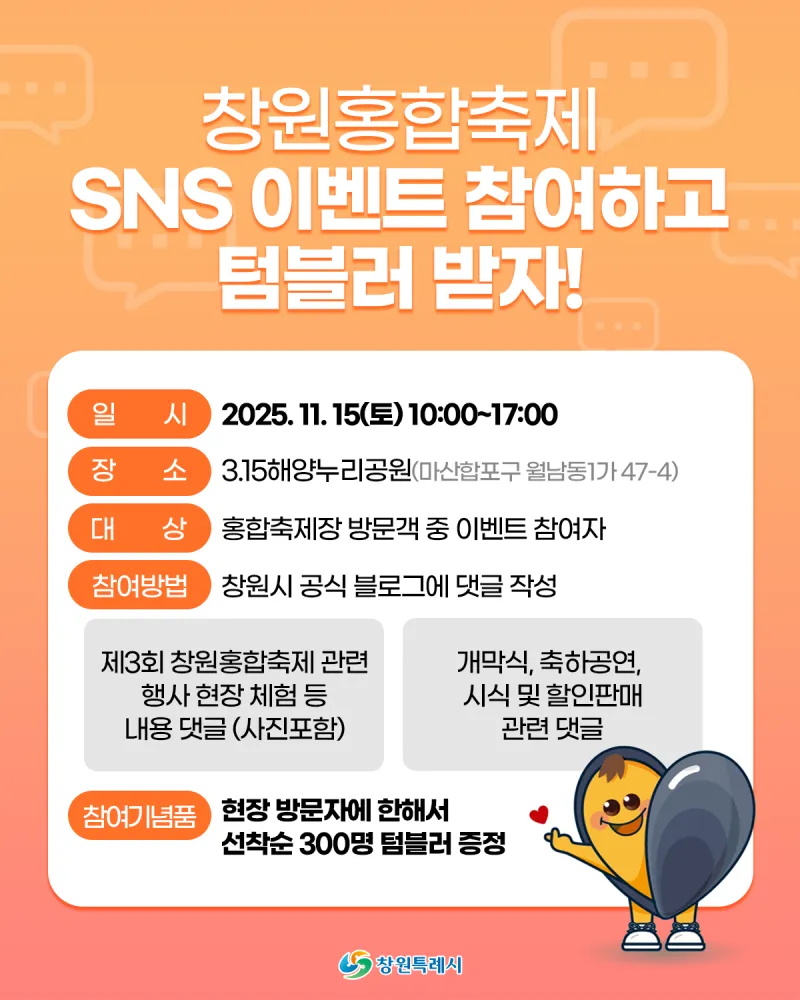 #홍합요리 #무료시식 #텀블러이벤트 #바다의도시창원 #지역특산물축제 #창원먹거리