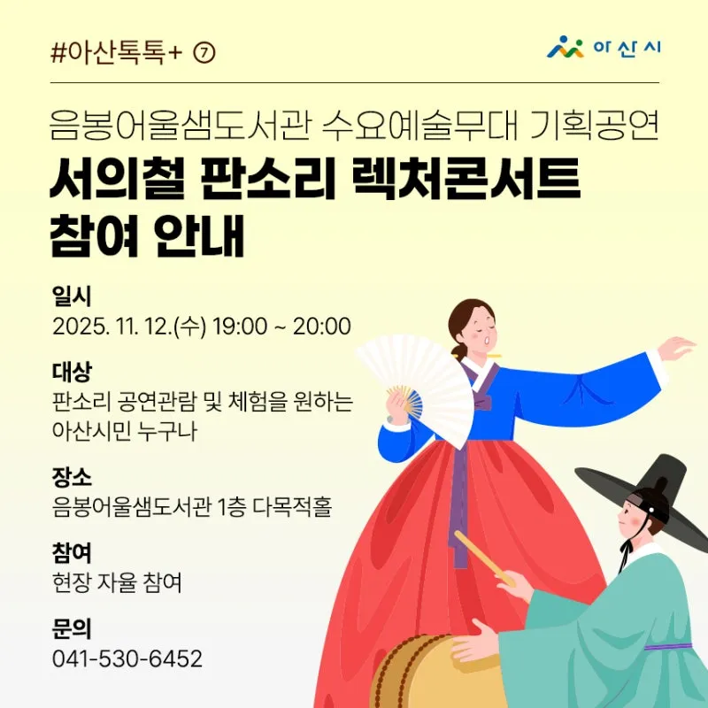 대상 : 판소리 공연관람 및 체험을 원하는 아산시민 누구나