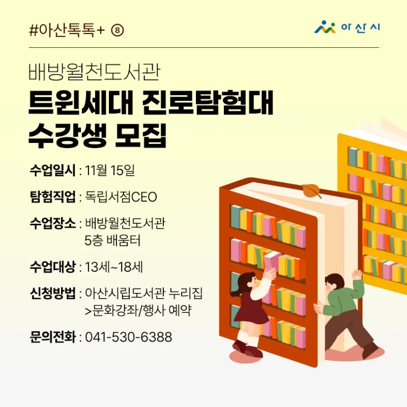 배방월천도서관 ‘트윈세대 진로탐험대’ 수강생 모집