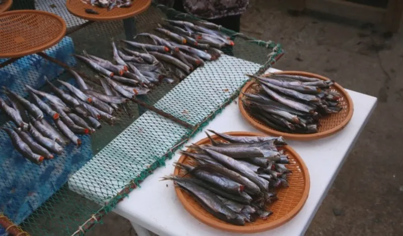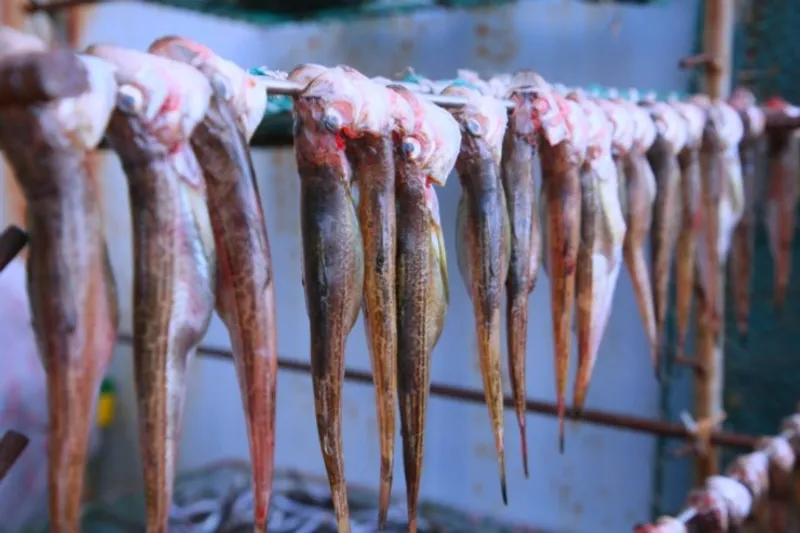 오징어난장의 각 부스마다 양미리와 도루묵을 말리고 있었는데