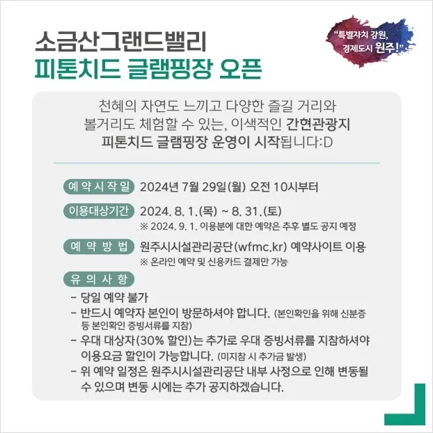 ◾위 예약 일정은 원주시시설관리공단 내부 사정으로 인해 변동될 수 있으며 변동 시에는 추가 공지하겠습니다.