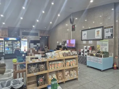 로비에는 먹거리가 가득한데요. 먹거리가 우리의 입을 유혹하고 있답니다.