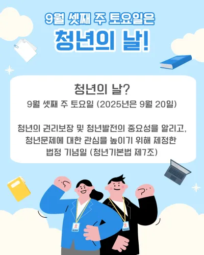 매년 9월 셋째 주 토요일은 청년의 날입니다!