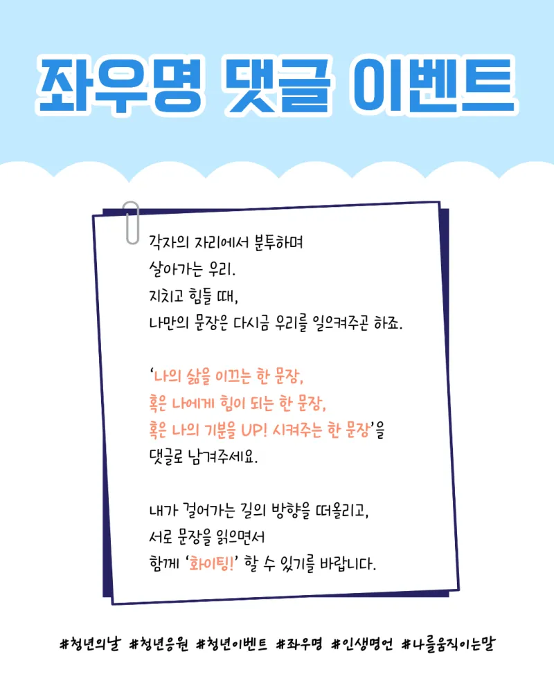 ② '나의 삶을 이끄는 한 문장(혹은 힘이 되는 문장)'을 댓글 남기기!