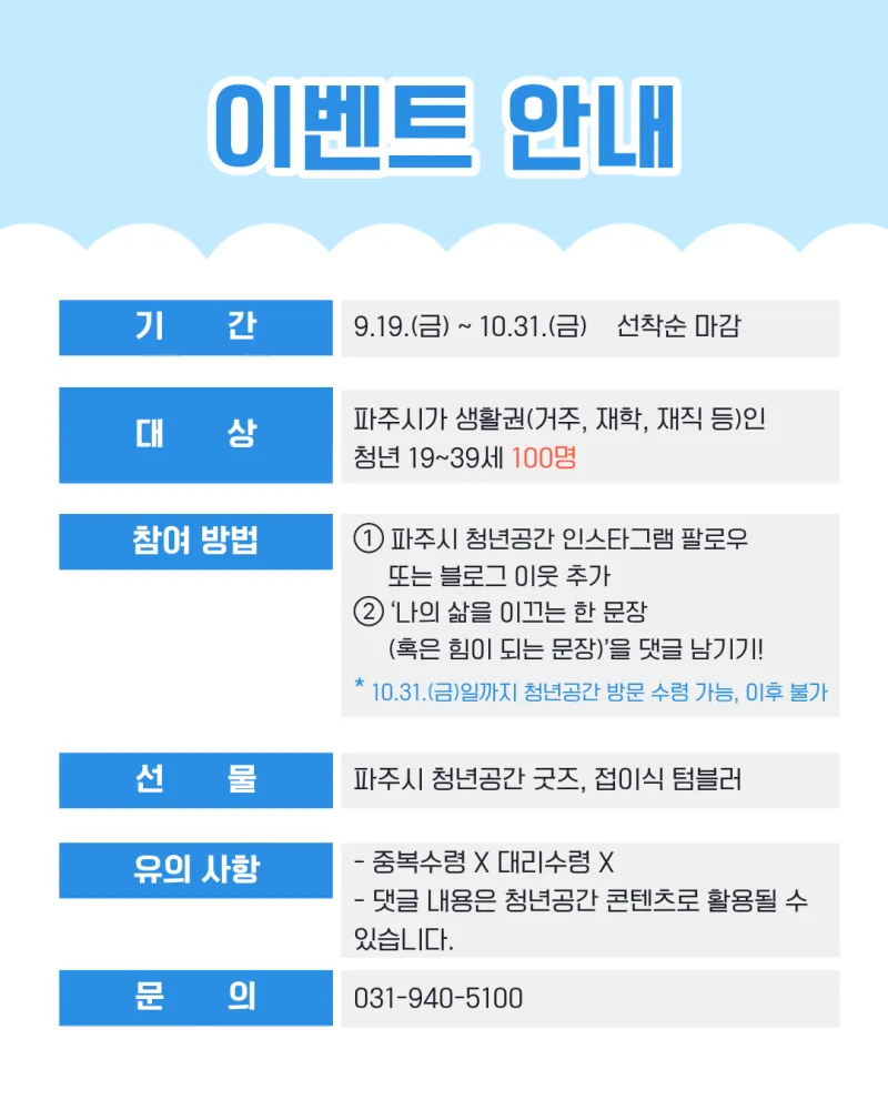 ① 파주시 청년공간 인스타그램 팔로우 또는 블로그 이웃 추가