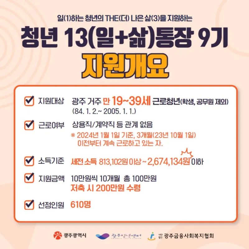 [ 청년 13(일+삶)통장 9기 지원개요 ]